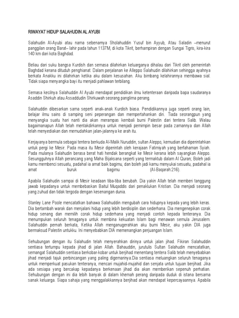 Doc Riwayat Hidup Salahudin Al Ayubi Azhar Hashim Academia Edu